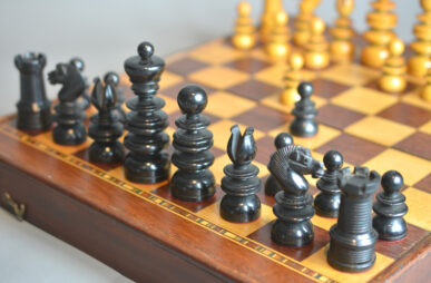 The design of knights and pieces are typical of St George sets made by Jaques of London in the second half of the 19th century.