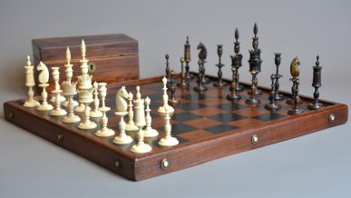 The chessmen housed in same period rosewood box.